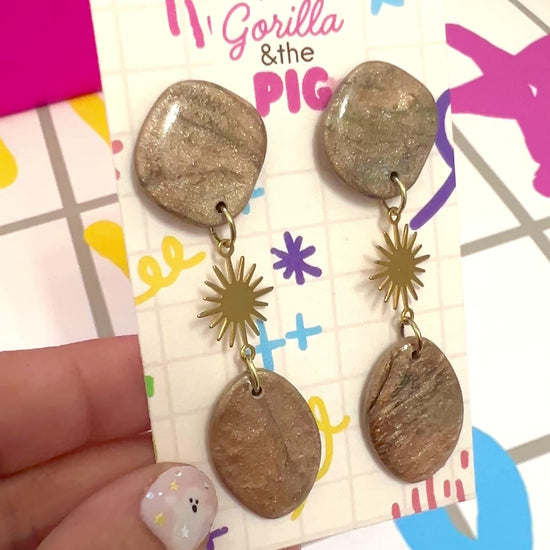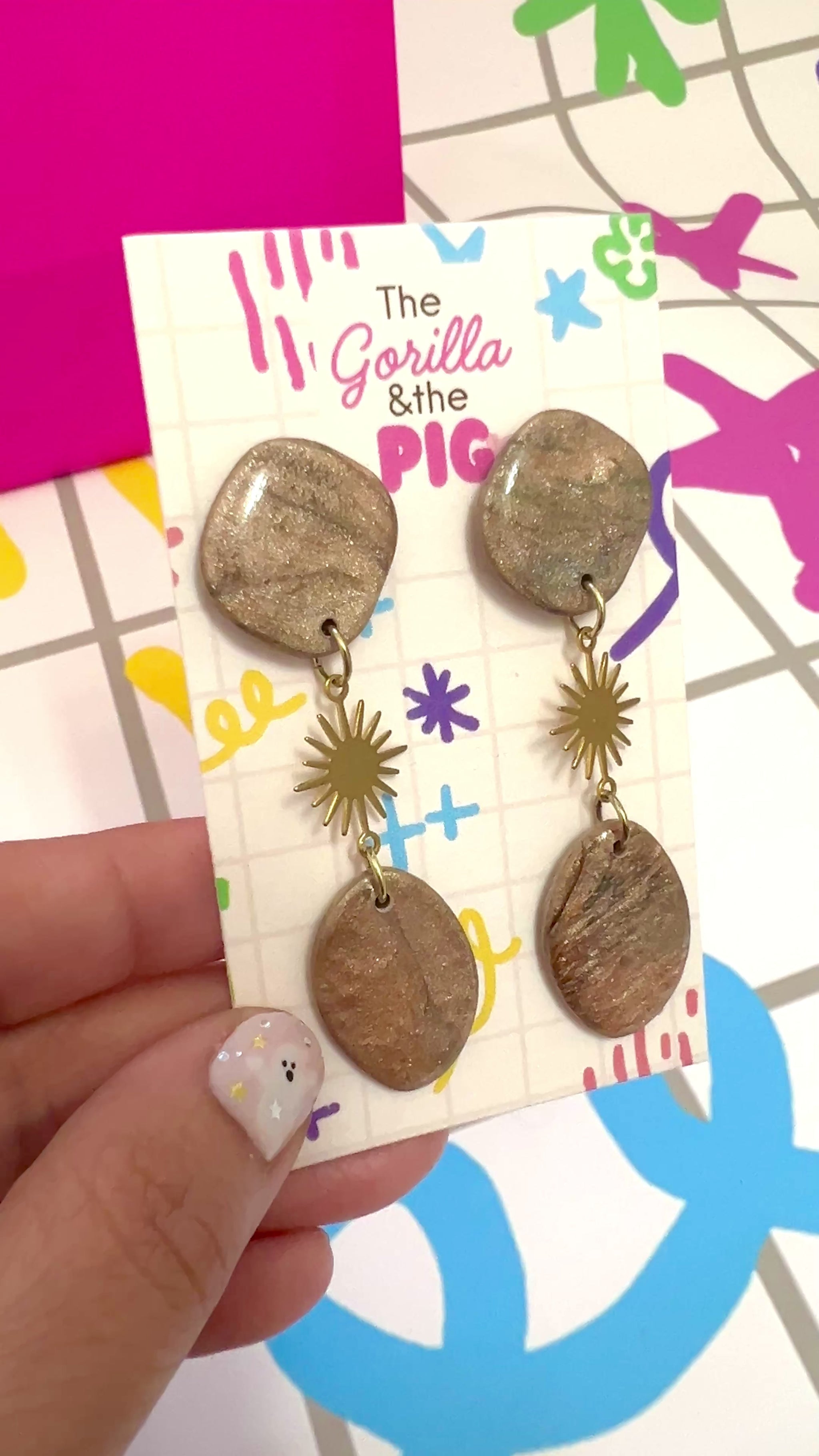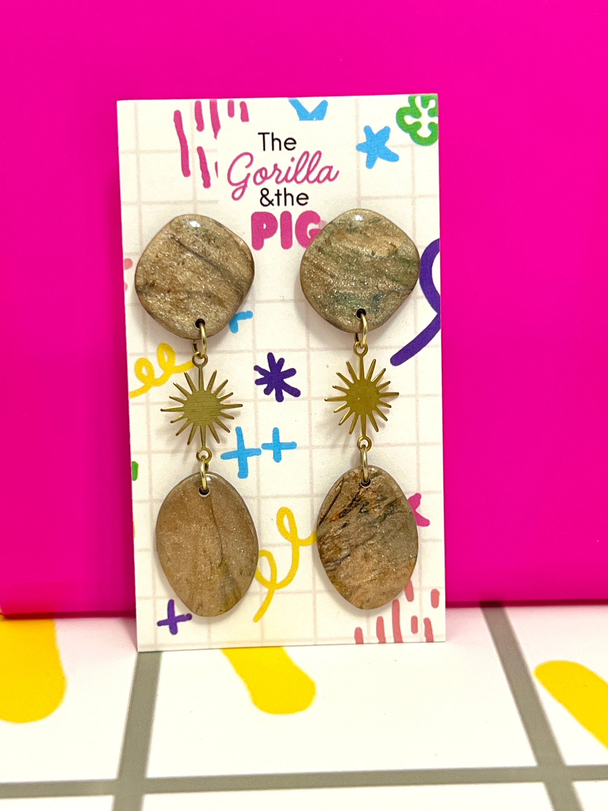 Nickle free stud backing. About little over 2 inches long. Polymer clay with resin for durability