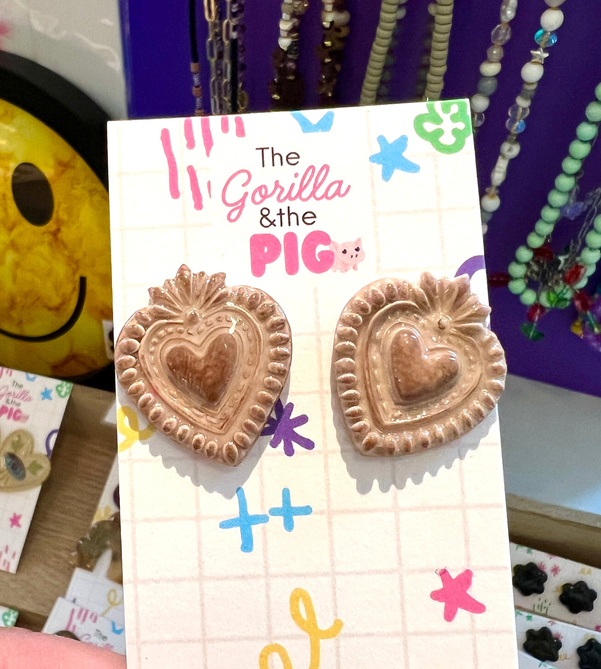 Nickle free backing. About 1 inch big. Polymer clay with resin for durability